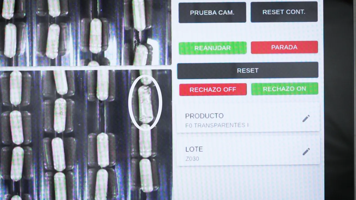 Falcon Vision es una tecnología avanzada desarrollada por Flight Labs que utiliza inteligencia artificial para analizar imágenes en tiempo real. Con dos cámaras de alta precisión, detecta defectos en cápsulas de gelatina dura con precisión milimétrica. La tecnología permite retirar las cápsulas defectuosas al instante sin detener la producción, asegurando menos desperdicio, mayor eficiencia y máxima calidad.